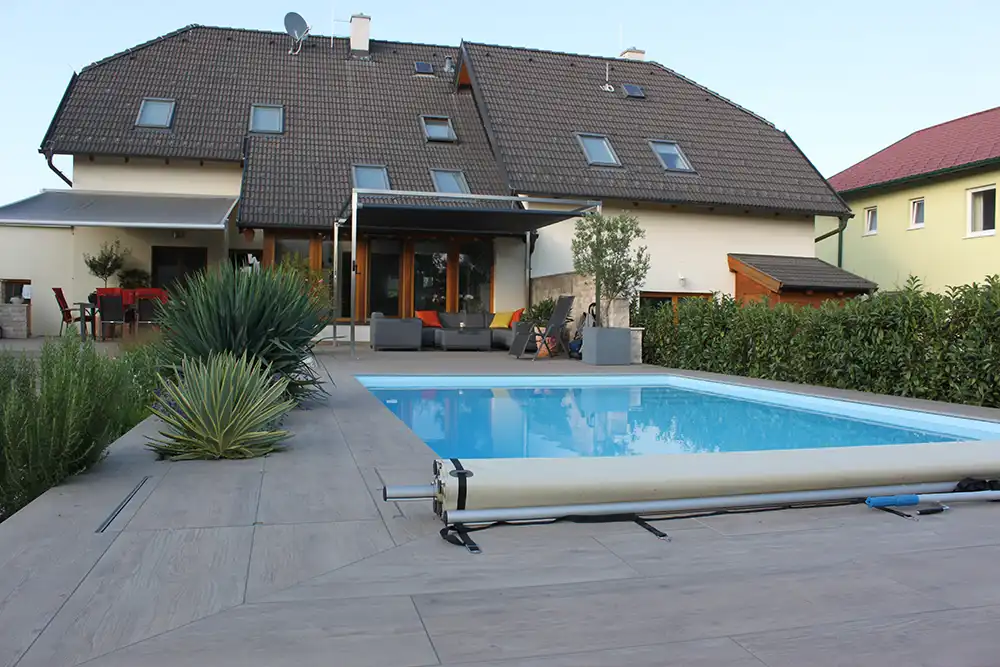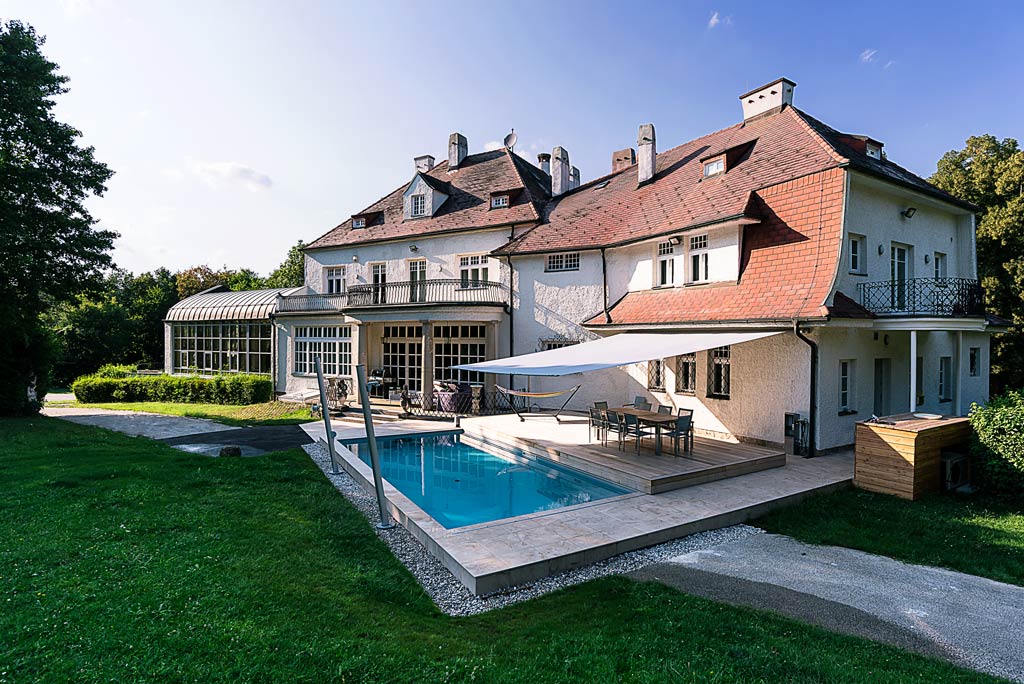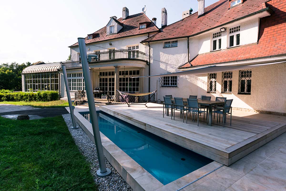 Im Frühjahr 2018 durften wir unter der architektonischen Leitung von Frau Architektin DI Bmstr. Cornelia Schindelegger eine Poollandschaft neben einem bestehenden Jagdschloss in den Tiefen des Wienerwaldes errichten. Die Wohlfühloase sollte aus einem großzügigen Folienpool mit anschließender Terrassenfläche und Schiebedeck bestehen.