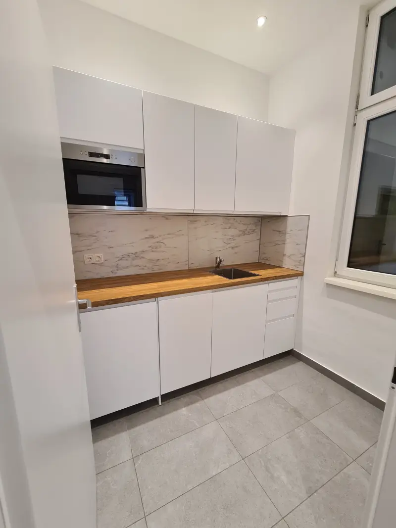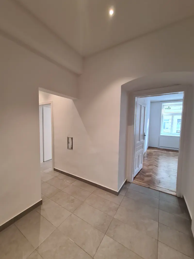 Die ehemalige Hausbesorgerwohnung hat in ihrem ursprünglichen Zweck schon lange ausgedient und wurde zu einer sympathischen Immobilie für eine Bürofläche umgebaut. In knapp 3 Monaten Bauzeit wurde die Wohnung generalsaniert. Ein neues Grundrisskonzept sowie neue Bau-und Haustechnik treffen in der etwa 70m² großen Mieteinheit auf den Charme der Gründerzeit, denn es wurde, wo es möglich war, der historische Parkett saniert und auch die stilvollen Fensterumrahmungen belassen.