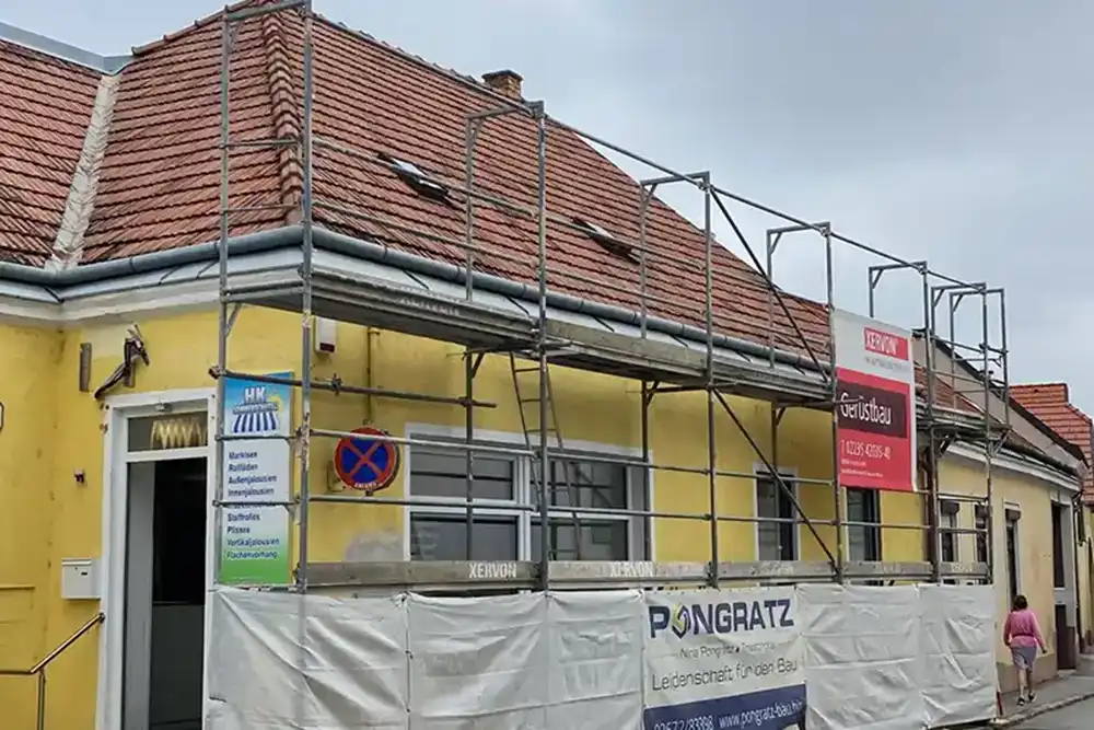 Im Ortszentrum von Guntramsdorf durften wir im Jahre 2022 eine Aufstockung eines Bestandsgebäudes errichten. Eine Bauarbeit in dicht besiedeltem Gebiet wie diesem setzte eine abgestimmte Schnittstellen- und Baustelleneinrichtungsplanung voraus, die wir genauestens mit unserem Bauherren und den Behörden festlegten.