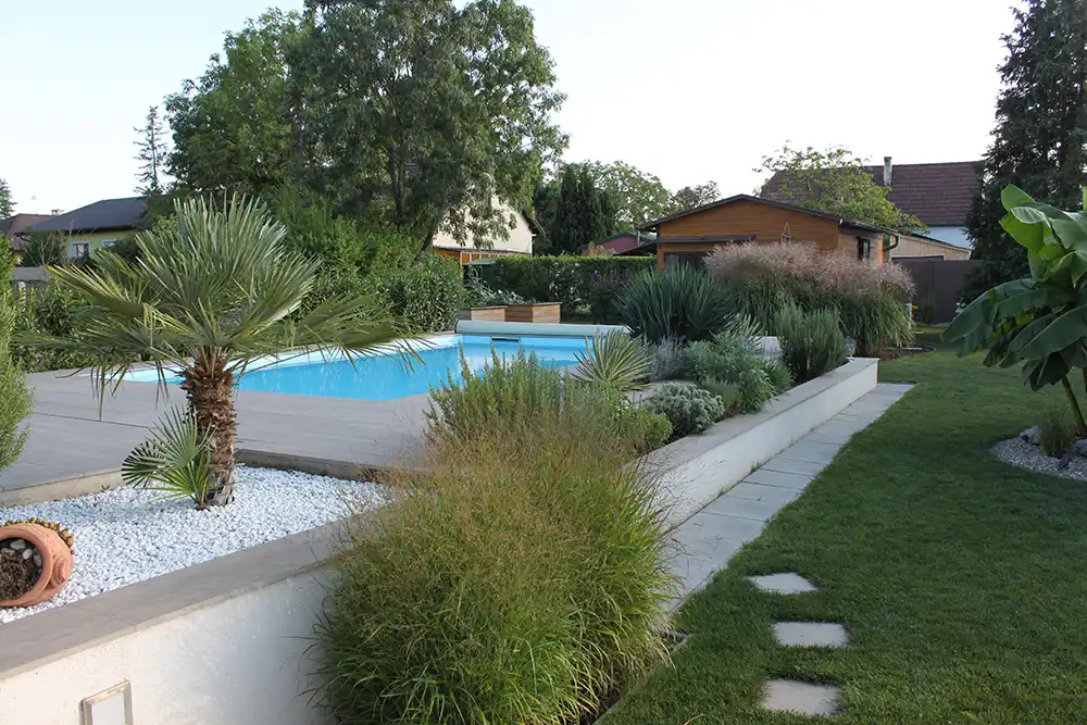 Im Frühjahr 2020 durften wir für unsere Kundschaft eine Wohlfühloase mit Poollandschaft in Baden errichten. Besonders interessant bei diesem Projekt war die Einbindung der Poolanlage in die Terrasse und die Einfassung mittels betonierten Blumentrögen. Durch eine umsichtige Planung und viel engere Zusammenarbeit mit der Kundschaft konnten wir nach mehreren Wochen Bauzeit das Objekt wieder in die Hände der Kunden übergeben. Wurden unsere Blumentröge noch bepflanzt, um die Optik des Gartens zu finalisieren.