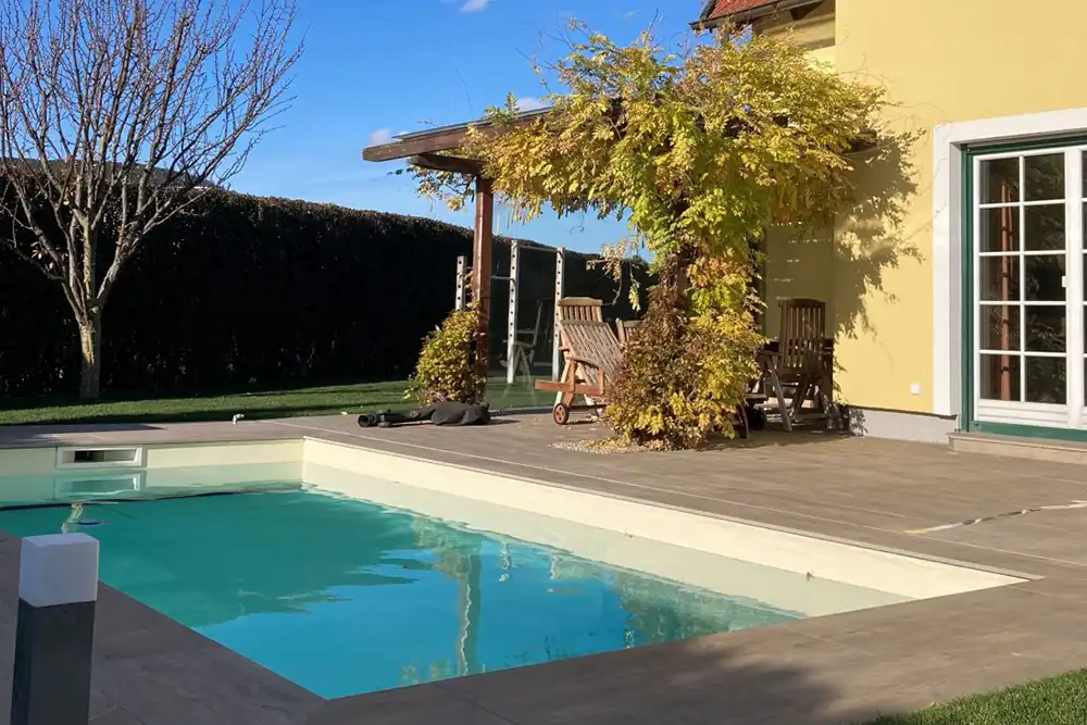 Als Startprojekt im Jahre 2021 durften wir die Poolanlage für einen Privatkunden in Kottingbrunn realisieren. Gemeinsam mit den Auftraggebern starteten wir uns schon Ende des Jahres 2020 mit der Planung des Pools, um dem ohnehin schönen Garten noch mehr Eleganz zu verleihen.
