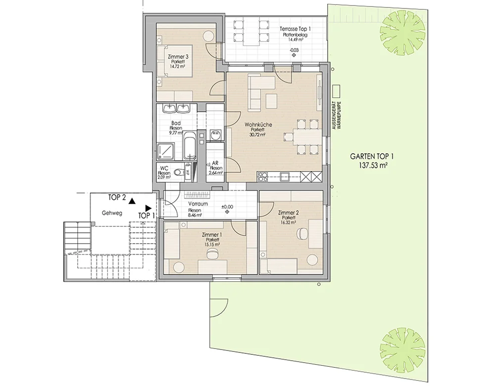 Top 1 – 4-Zimmer-Eigentumswohnung mit großem Eigengarten