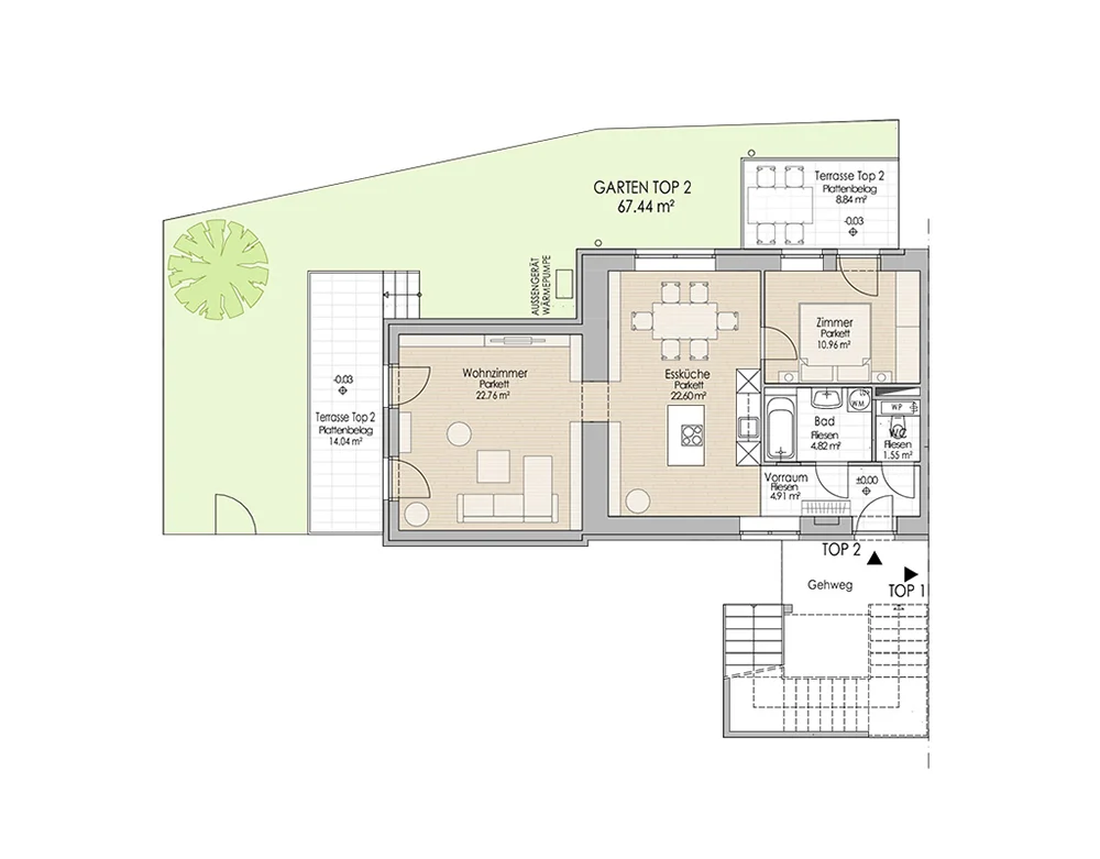 Top 2 – Sanierte 3-Zimmer-Wohnung mit Terrasse & Eigengarten